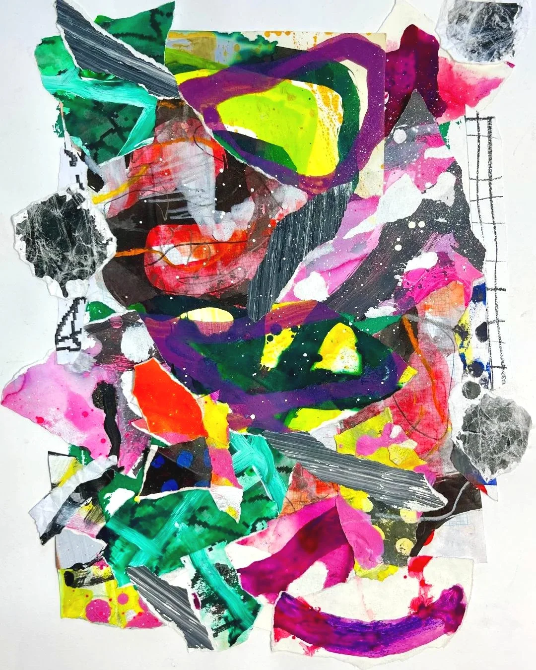 ‘Another Green World’ Mixed-media on found paper, 30 x 42cm, 2025